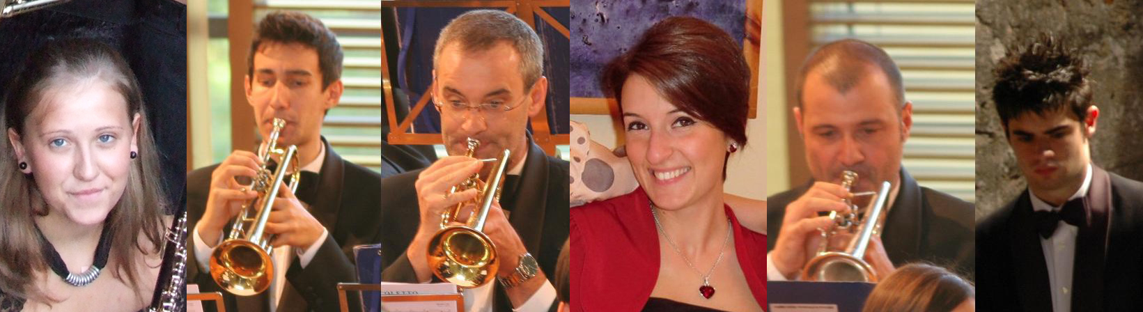 Da sinistra verso destra tutti i membri del direttivo: Anna Zuccotti (Oboe), Andrea Magarini (Tromba), Roberto Pizzoccheri (Cornetta), Caterina Bosetti (Clarinetto piccolo), Marco Locatelli (Flicorno), Paolo Vallevi (Percussioni).