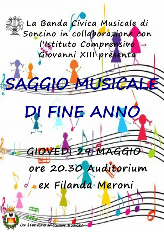 A conclusione di un bellissimo anno della Scuola di Musica realizzato in collaborazione con l’Istituto Comprensivo Giovanni XXIII di Soncino siamo lieti di invitarvi al Saggio di Fine Anno che avrà luogo in Filanda giovedì 29 maggio alle ore 21.00.